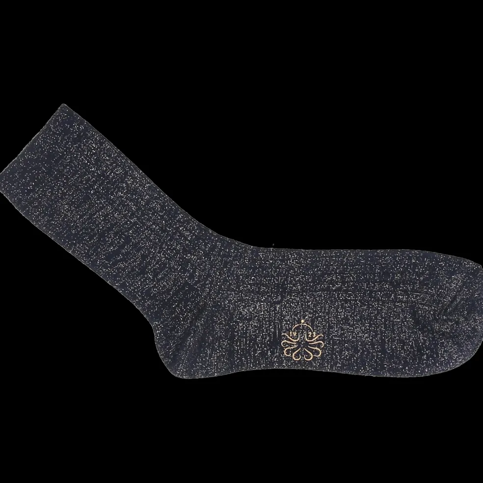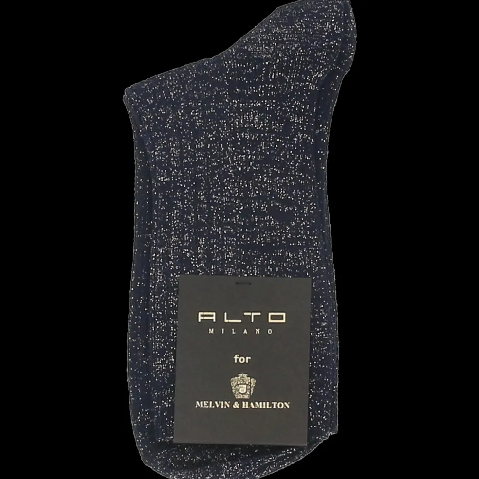 Die Socken Beziers in Dunkelblau überzeugen mit ihrem schlichten Design und einem Hauch von Glitzer für einen glamourösen Look. Entworfen und hergestellt von Alto Milano für Melvin & Hamilton, steht das Logo des Herstellers für italienische Exzellenz. In Einheitsgröße passen sich diese halbhohen Socken perfekt deinem Fuß an und sind besonders langlebig.