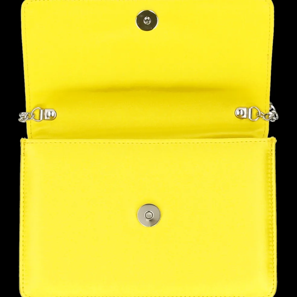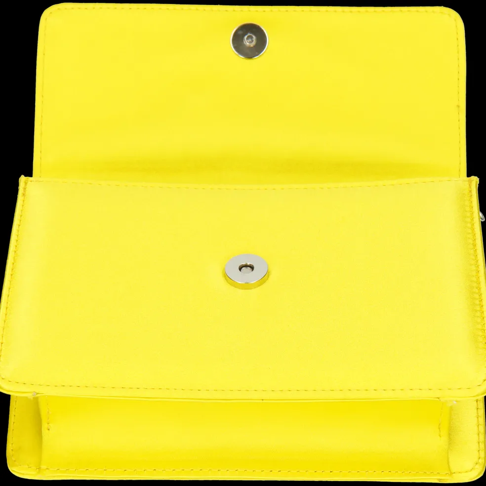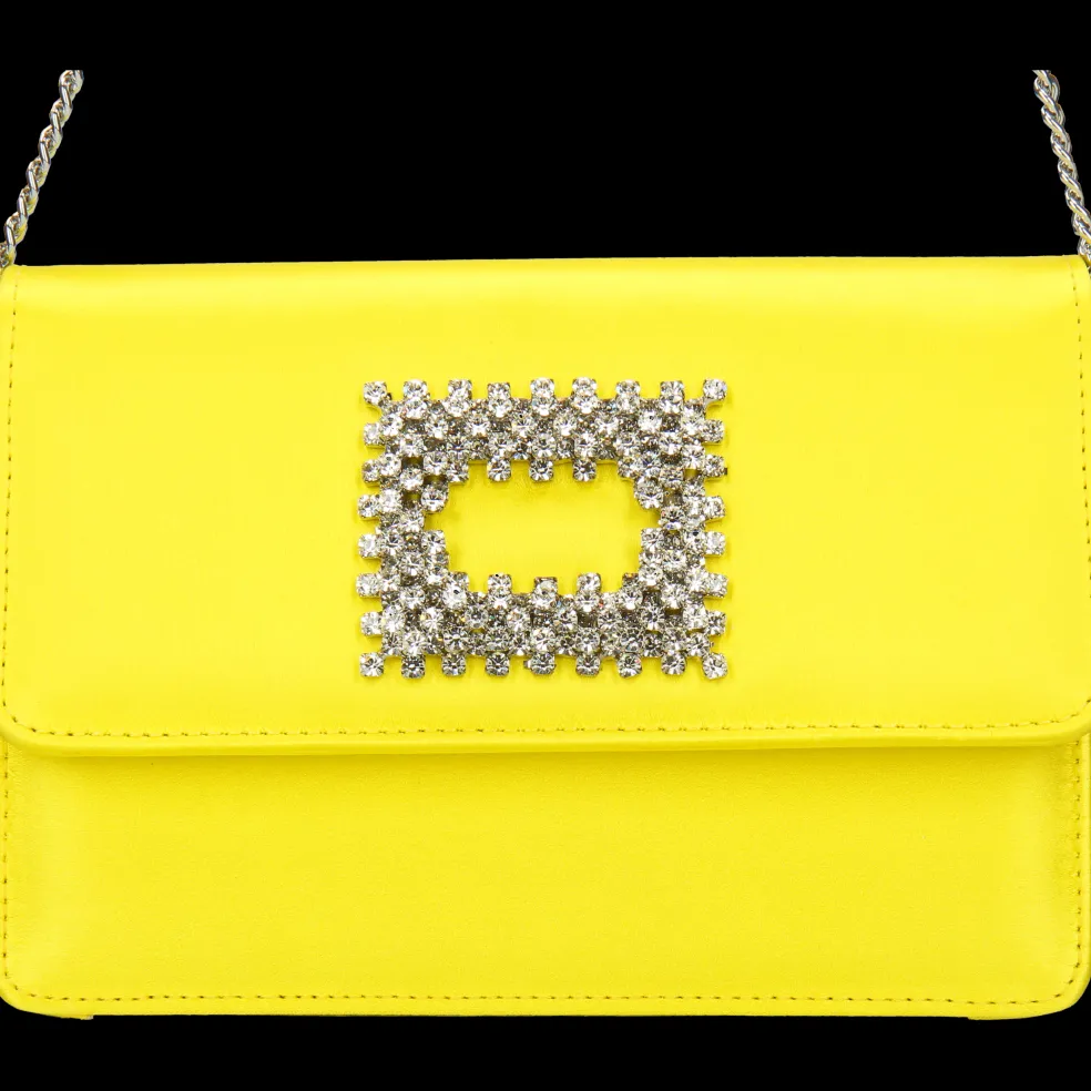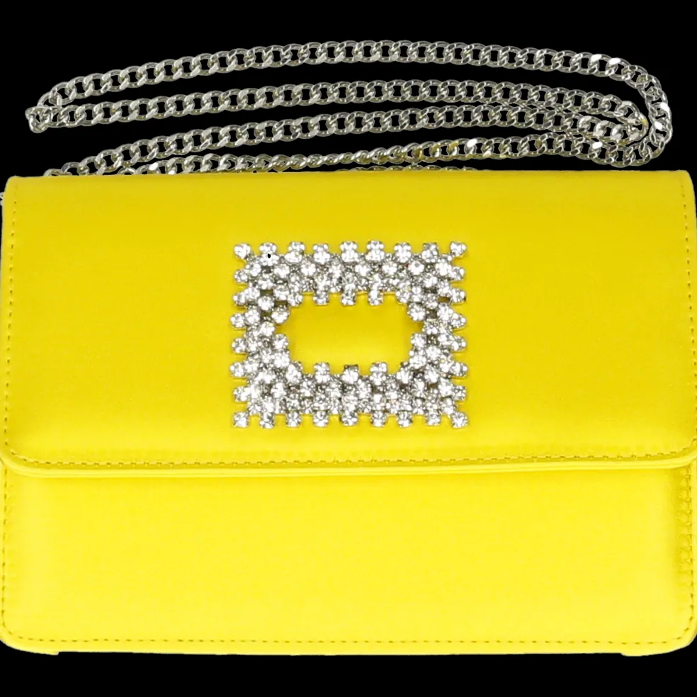 Melvin & Hamilton präsentiert seine exklusive Capsule Collection in Zusammenarbeit mit der italienischen Marke Fratelli Russo. Die mit einem auffälligen quadratischen, kristallverzierten Magnetverschluss geschmückte Clutch wird in Italien hergestellt. Die Tasche aus gelben Satin Franca ist mit einer farblich abgestimmten Ziernaht versehen, die ihr ein handwerkliches Finish verleiht. Die Metallkette erlaubt es, die Clutch auch über der Schulter zu tragen.