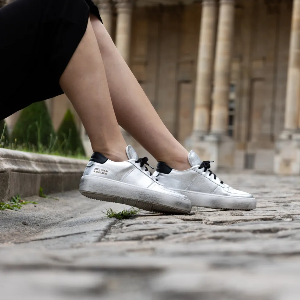 Entdecke die brandneue Frühjahrs-/Sommerkollektion aus dem Hause Melvin & Hamilton! Mit unseren Sneakers Gigi 2 für Damen bist Du in allen Situationen bestens gekleidet! Ob für die Arbeit oder einen sommerlichen Spaziergang im Park – Unsere Ledersneakers Gigi 2 sind unverzichtbar in jedem Schuhschrank und versprechen Dir absoluten Komfort, auch an warmen Tagen. Wie auf Wolken gehen – Melvin & Hamilton kann auch Sneaker! Unsere innovativen und trendigen Damenschuhe in silber sind bei der Arbeit oder auf Ausflügen immer bequem und leicht. Sie werden in diesem Frühjahr und Sommer Deine liebsten Begleiter sein!