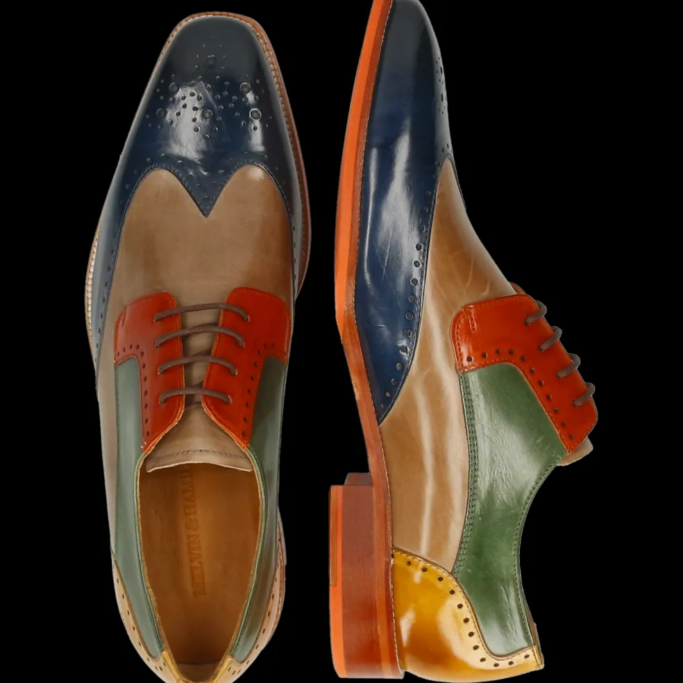 Entdecke Derbyschuhe aus Leder für Herren aus der Frühlings- und Sommer-Kollektion von Melvin & Hamilton. Klassisch geformte Schnürschuhe passen zu allen Stilen und sind ein Muss für jede Garderobe. Mit diesem Modell Jeff 14 erhälst du hochwertige Qualiät und bestes Design! Setze ein Fashion-Statement mit diesem Paar Lederderbys in mehrfarbig, welche die wärmeren Tage noch ein bisschen bunter und schöner machen werden! Ein bisschen Originalität schadet nie, vor allem nicht bei diesen Schnürschuhen in trendigen Farben und Mustern. Natürlich alles in gewohnter Melvin & Hamilton-Qualität!