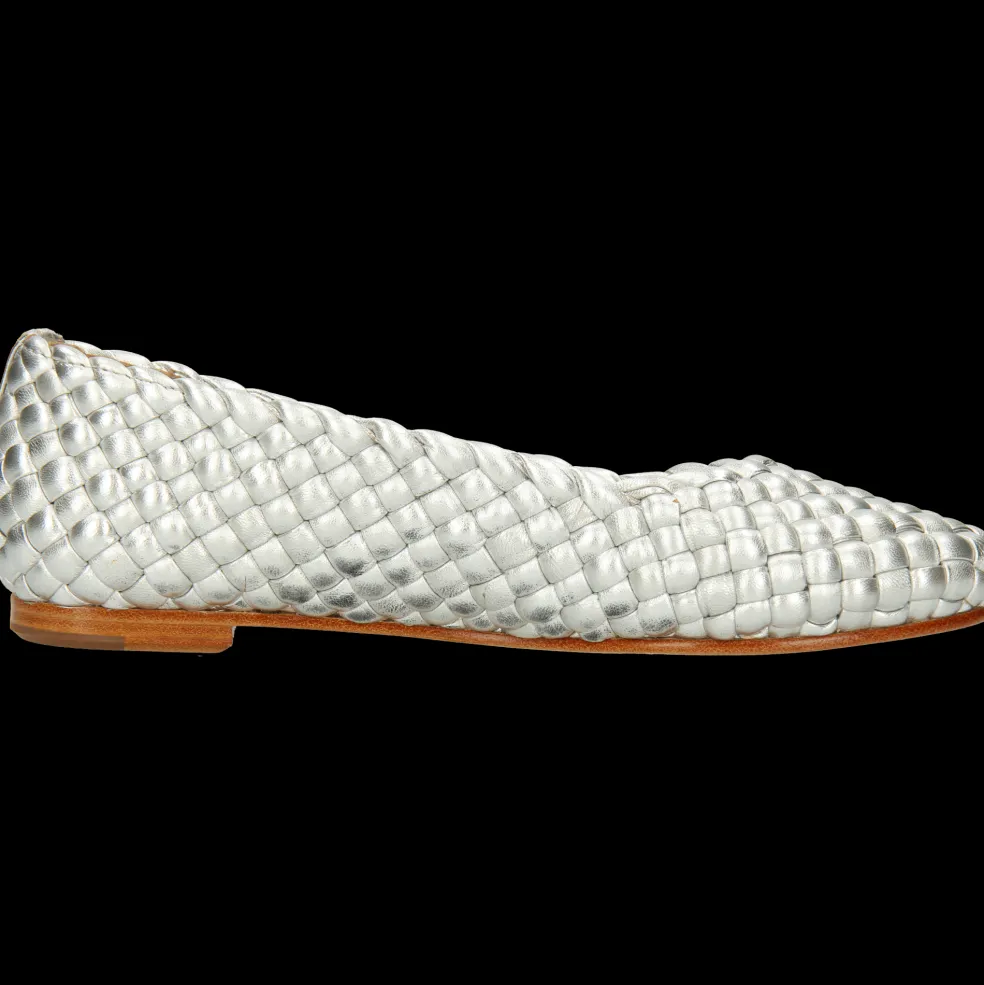 Die neue Frühjahrs- und Sommerkollektion der Damenballerinas von Melvin & Hamilton ist endlich da! Leicht und bequem sind unsere Ballerinas die perfekte Wahl für die schönen warmen Sonnentage der Saison. Entdecken unsere Leder-Ballerinas Kate 34 von Melvin & Hamilton. Originelle Farben und trendige Muster sind das Markenzeichen von Melvin & Hamilton! Diese Lederballerinas silber sind da keine Ausnahme. Wenn Du also einen eleganten Look durch einen Touch Originalität aufwerten willst, ist dieses Paar Ballerinas genau das Richtige für Dich!