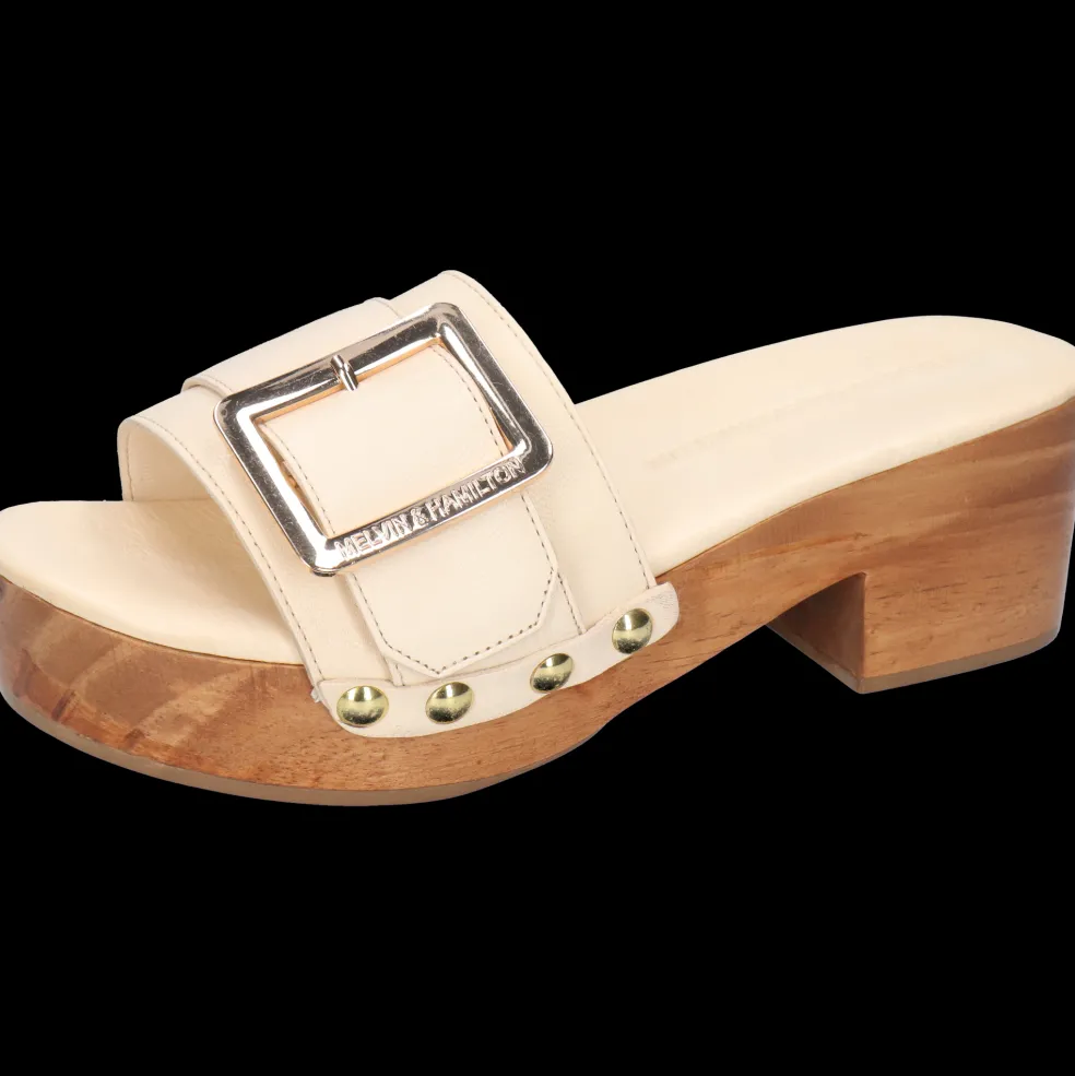 Melvin & Hamilton präsentiert seine Frühjahr/Sommer-Kollektion von Clogs für Damen. Bequem und mit Plateau, begleiten dich die Clogs durch die gesamte Saison. Entdecke unser Modell Layla 1 aus Leder, seine Eigenschaften und wie man es trägt. Unsere Clogs sind aus hochwertigem Leder und mit dem Know-how der Marke angefertigt. Sie sind in verschiedenen Versionen erhältlich, ob als feminine gewebte Clogs oder als grungige Nieten-Sandalen. Sie sind mit einer Plateausohle aus Holz und Gummi ausgestattet, die einen eleganten und schicken Look verleiht, ohne dass auf Komfort verzichtet werden muss. Entscheide dich für diese beige Lederclogs und zeige deine Beine!