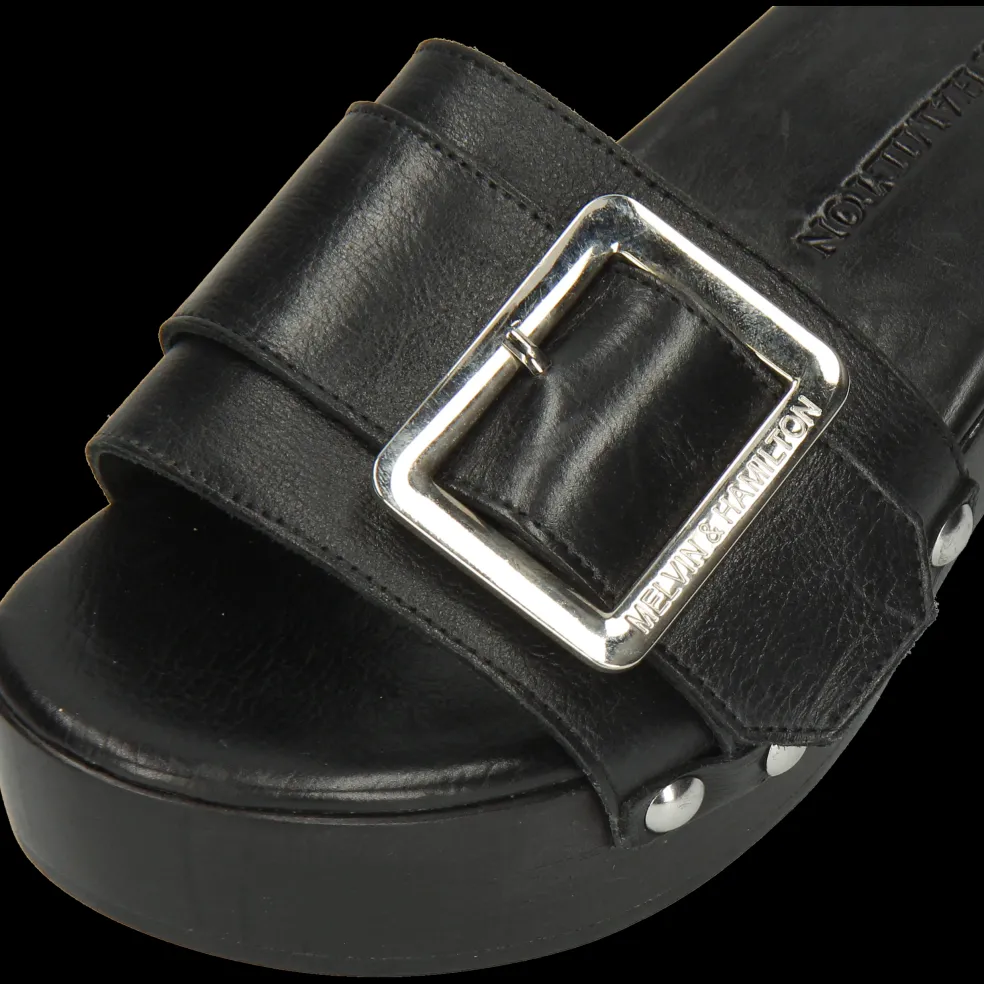 Melvin & Hamilton präsentiert seine Frühjahr/Sommer-Kollektion von Clogs für Damen. Bequem und mit Plateau, begleiten dich die Clogs durch die gesamte Saison. Entdecke unser Modell Layla 1 aus Leder, seine Eigenschaften und wie man es trägt. Unsere Clogs sind aus hochwertigem Leder und mit dem Know-how der Marke angefertigt. Sie sind in verschiedenen Versionen erhältlich, ob als feminine gewebte Clogs oder als grungige Nieten-Sandalen. Sie sind mit einer Plateausohle aus Holz und Gummi ausgestattet, die einen eleganten und schicken Look verleiht, ohne dass auf Komfort verzichtet werden muss. Entscheide dich für diese schwarz Lederclogs und zeige deine Beine!