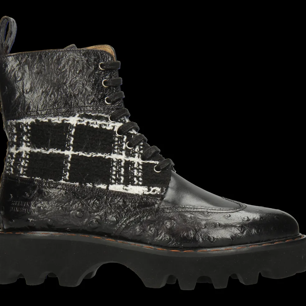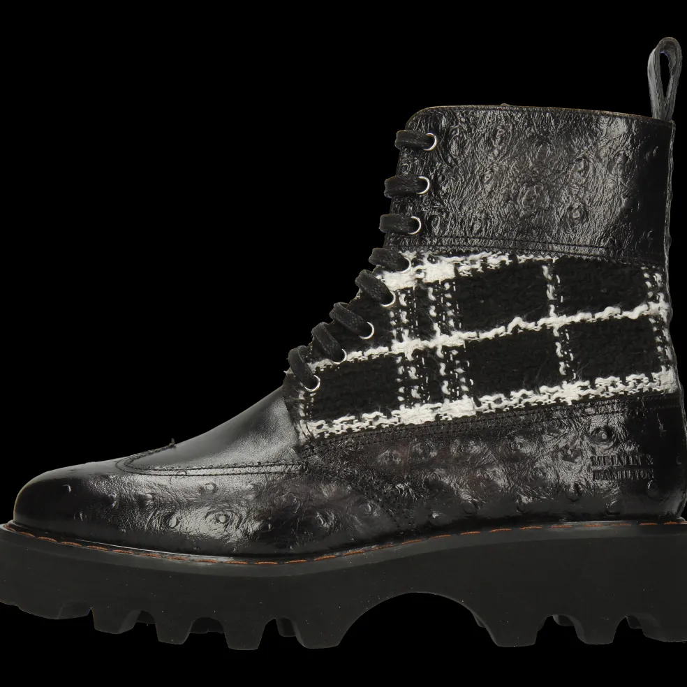 Melvin & Hamilton präsentiert seine Herbst/Winter-Kollektion von Damenstiefeln. Während der ganzen Saison werden sie deine Beine auf elegante Weise verlängern. Entdecke unser Ledermodell Megan 38, seinen Charakter und wie man es trägt. Um Dich durch die Wintersaison zu begleiten, werden diese Damen Lederstiefel schwarz alle Blicke auf sich ziehen, dank ihrer warmen Farben und trendigen Muster – genug, um das umgebende Grau aufzuhellen. Trau Dich ruhig, Originalität zu zeigen.