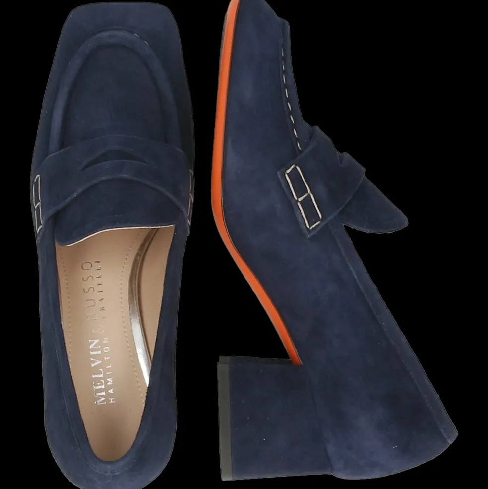 Melvin & Hamilton präsentiert seine exklusive Capsule Collection in Zusammenarbeit mit der italienischen Marke Fratelli Russo. Eine ganze Reihe von Pumps mit Stiletto oder Keilabsatz wartet auf dich! Entdecke unser Modell Meryll 1, seinen Charakter und wie du ihn tragen kannst. Um unser Sortiment an Schuhen mit Absatz zu erweitern, gibt es hier die Pumps Meryll 1 aus Veloursleder in dunkelblau. Mit ihrem Plateau-Blockabsatz sind sie feminin und passen gut zu einem Freizeitlook, um deinem Outfit einen glamourösen Touch zu verleihen. Trage sie zu einem formellen Look, um am Abend elegant und feminin zu wirken!