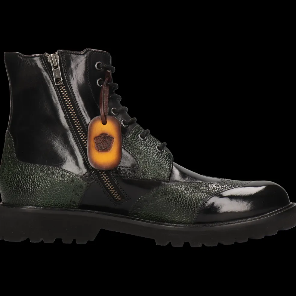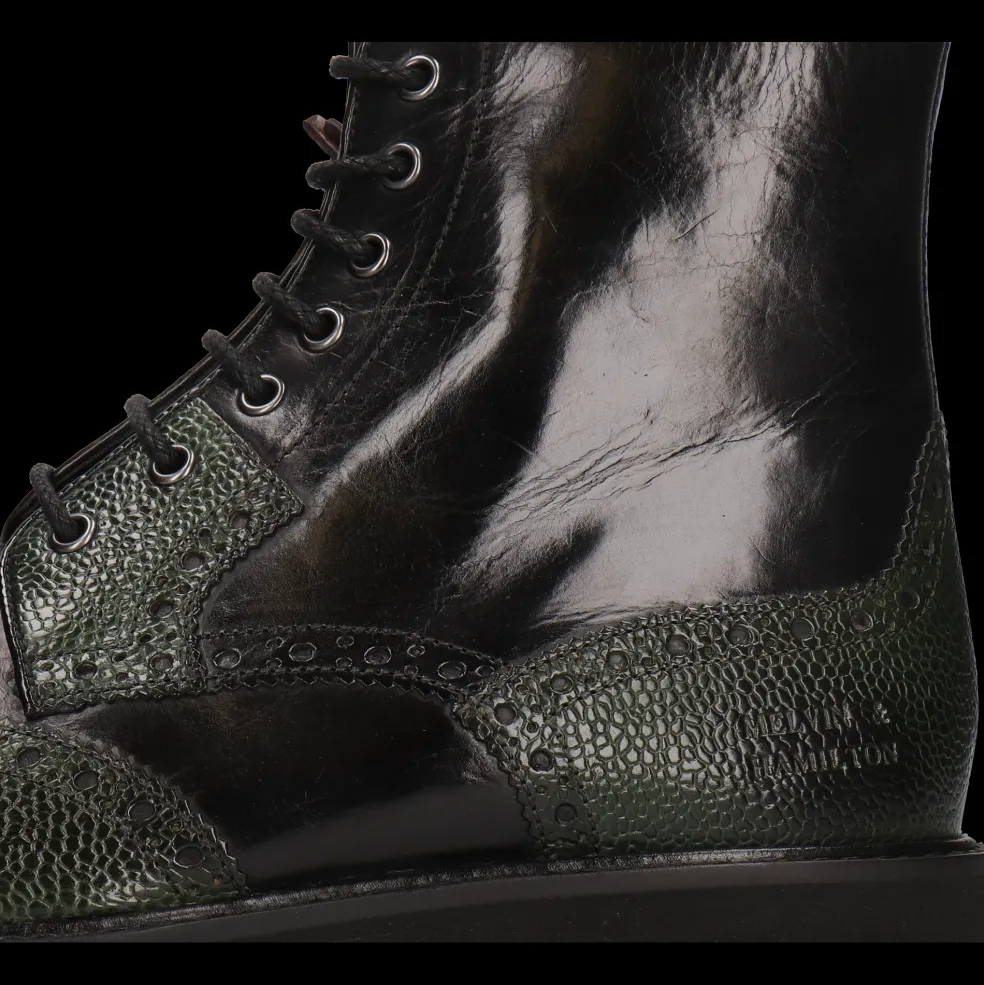 Lass Dich von der Herbst-Winter-Kollektion stylischer Lederstiefeletten für Herren von Melvin & Hamilton verzaubern. Wir stecken unser gesamtes Know-How der Lederverarbeitung in das Design und die Herstellung außergewöhnlicher Stiefeletten, den Must-Haves der kalten Jahreszeit. Mit dem Modell Pierce 29 entscheidest Du dich für einzigartige Qualität!Stiefeletten aus Leder in Grün, nichts ist klassischer und eleganter, auch wenn sie einen kleinen originellen Touch haben. Sie sind Begleiter für all Deine Outfits und insbesondere für einen schicken Business-Look. Diese Stiefeletten mit Gummi-Sohlen in schwarz lassen sich besonders gut im Winter tragen und halten Deine Füße schön warm!