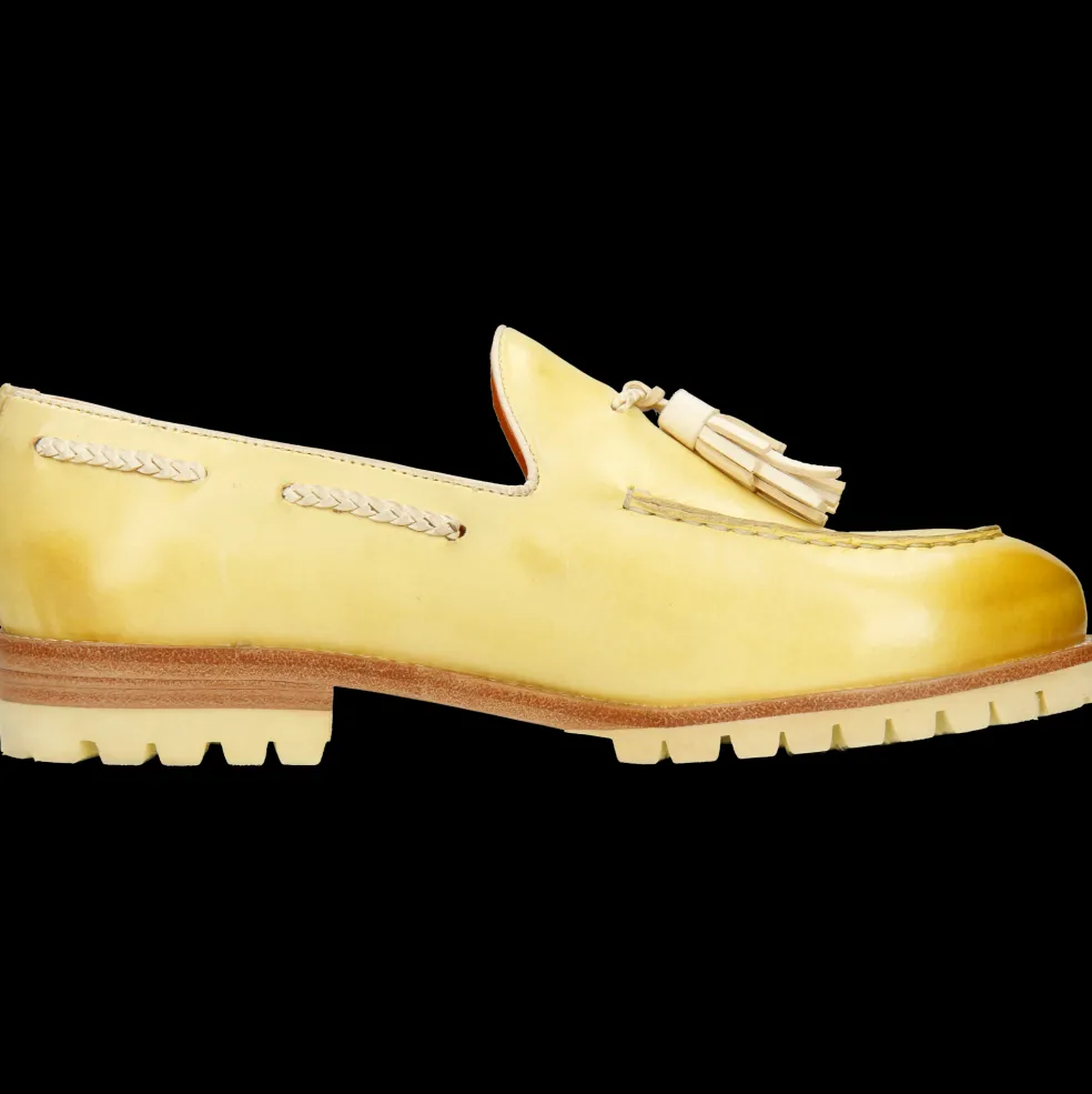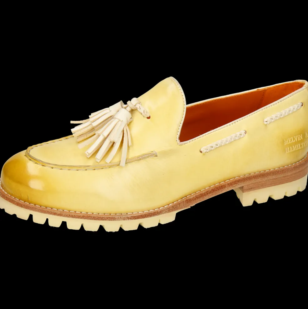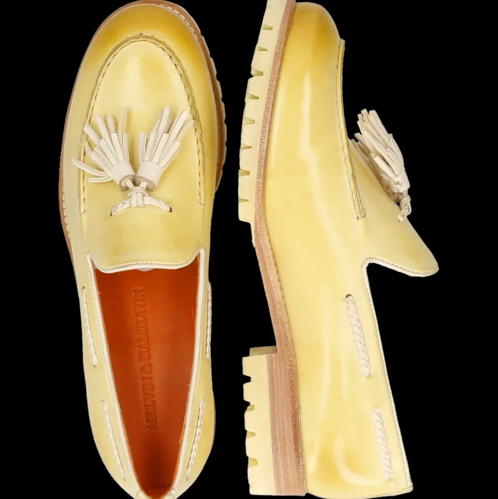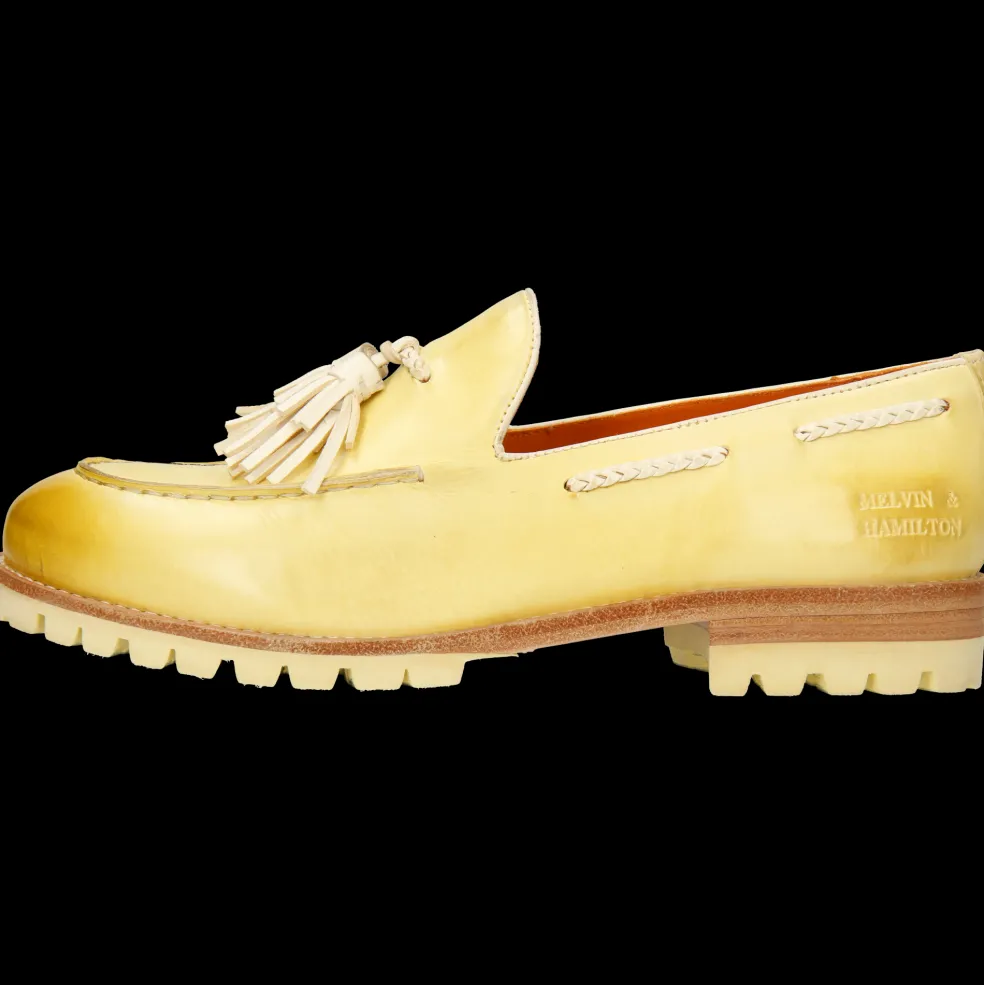 Melvin & Hamilton präsentiert seine Damenloafers für diesen Frühling und Sommer! Ob mit Schleifen, Quasten oder raffinierten Details, Loafers gibt es in vielen Formen. Entdecke unser Ledermodell Regine 19, seinen Charakter und wie man es trägt. Um ein klassisches Outfit aufzupeppen oder mit Farben und Mustern zu spielen, warten diese sehr originellen Leder-Mokassins in gelb auf Dich! In den warmen Tagen sind sie ein bequemer und dennoch stylischer Begleiter für jeden Tag! Heb Dich von der Masse ab – mit Schuhen von Melvin & Hamilton aus Qualitätsleder.