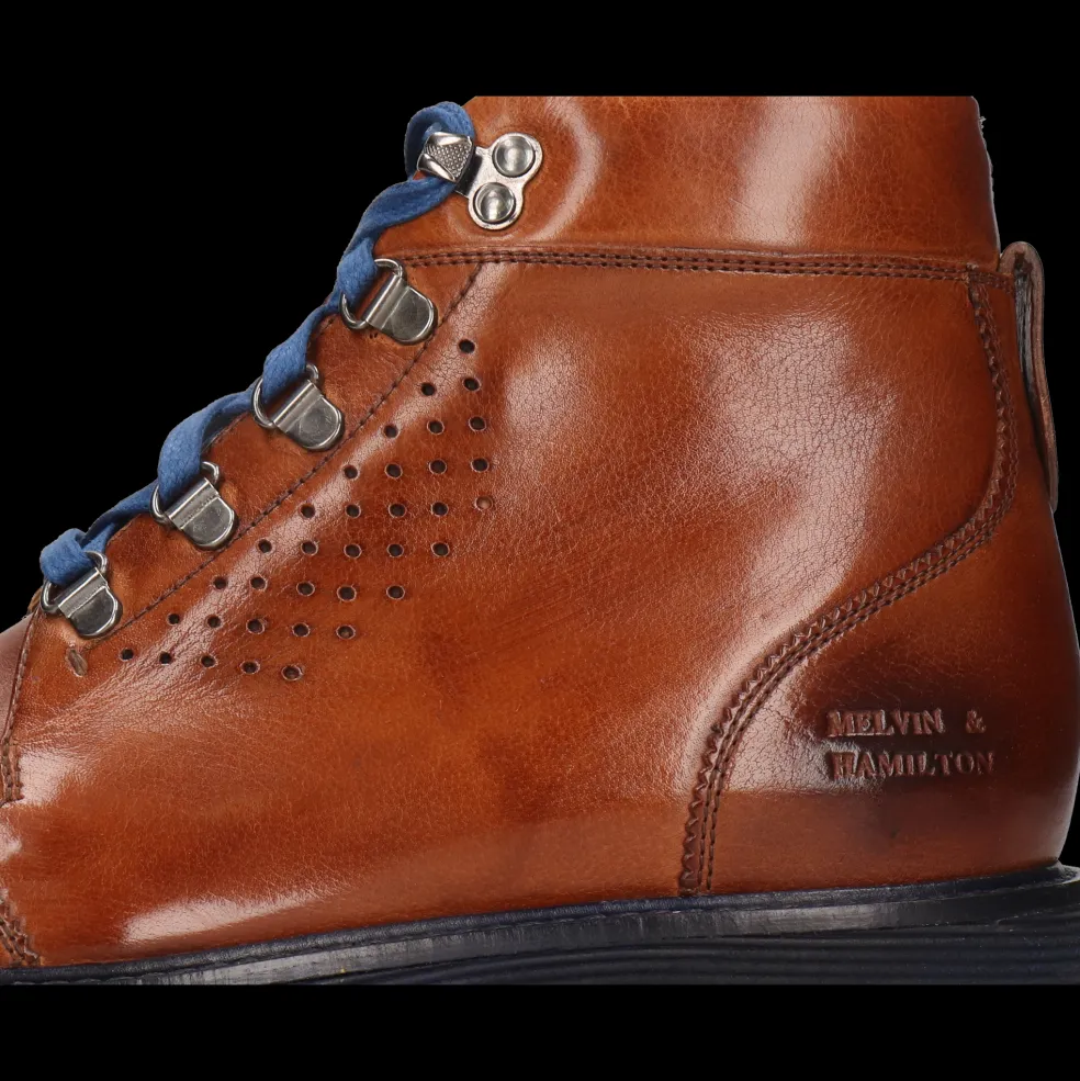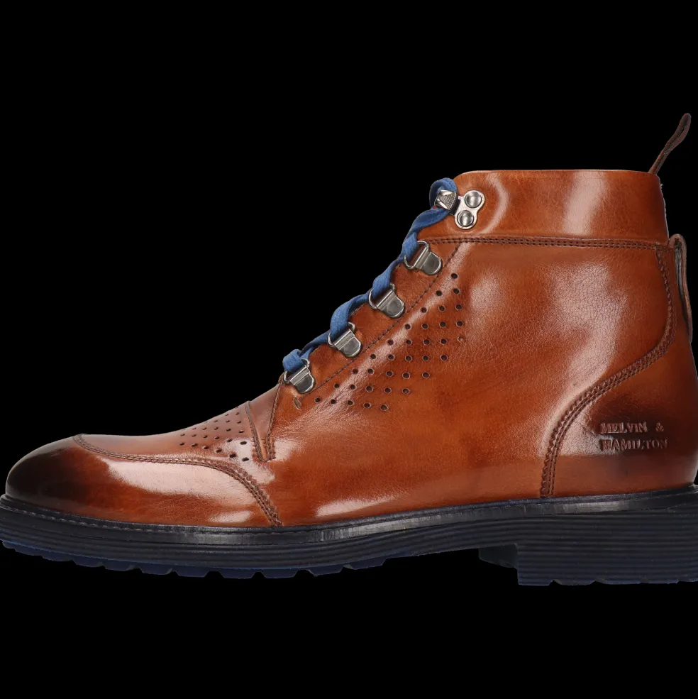 Lass Dich von der Herbst-Winter-Kollektion stylischer Lederstiefeletten für Herren von Melvin & Hamilton verzaubern. Wir stecken unser gesamtes Know-How der Lederverarbeitung in das Design und die Herstellung außergewöhnlicher Stiefeletten, den Must-Haves der kalten Jahreszeit. Mit dem Modell Trevor 5 entscheidest Du dich für einzigartige Qualität!Stiefeletten aus Leder in Braun, nichts ist klassischer und eleganter, auch wenn sie einen kleinen originellen Touch haben. Sie sind Begleiter für all Deine Outfits und insbesondere für einen schicken Business-Look. Diese Stiefeletten mit Gummi-Sohlen in blau lassen sich besonders gut im Winter tragen und halten Deine Füße schön warm!