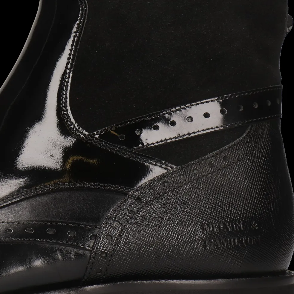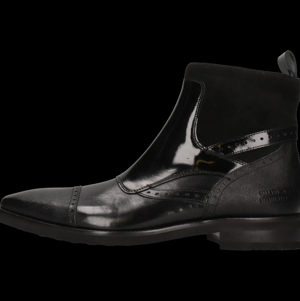 Lass Dich von der Herbst-Winter-Kollektion stylischer Lederstiefeletten für Herren von Melvin & Hamilton verzaubern. Wir stecken unser gesamtes Know-How der Lederverarbeitung in das Design und die Herstellung außergewöhnlicher Stiefeletten, den Must-Haves der kalten Jahreszeit. Mit dem Modell Elvis 74 entscheidest Du dich für einzigartige Qualität!Stiefeletten aus Leder in Schwarz, nichts ist klassischer und eleganter, auch wenn sie einen kleinen originellen Touch haben. Sie sind Begleiter für all Deine Outfits und insbesondere für einen schicken Business-Look. Diese Stiefeletten mit Gummi-Sohlen in schwarz lassen sich besonders gut im Winter tragen und halten Deine Füße schön warm!