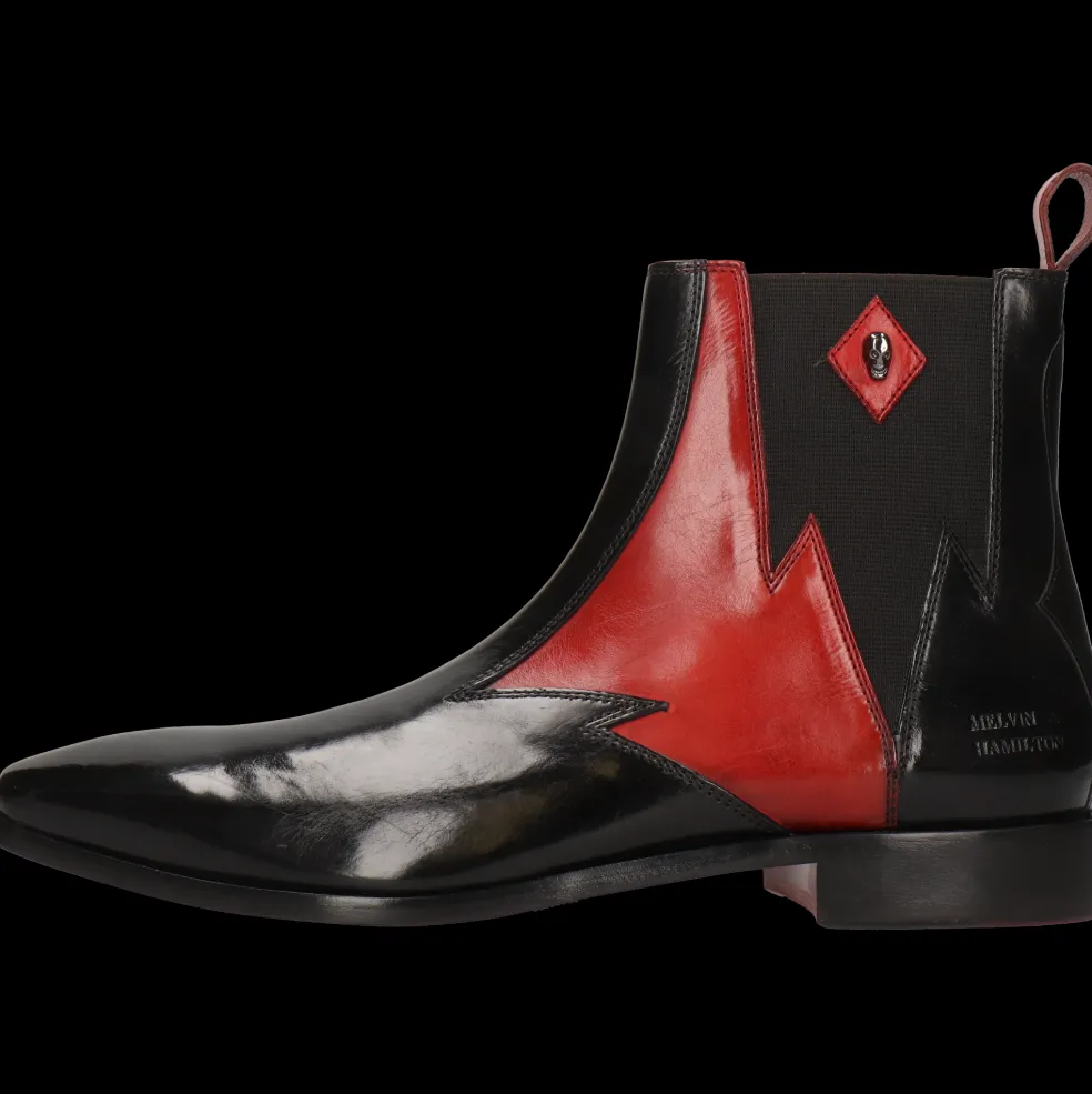 Lass Dich von der Herbst-Winter-Kollektion stylischer Lederstiefeletten für Herren von Melvin & Hamilton verzaubern. Wir stecken unser gesamtes Know-How der Lederverarbeitung in das Design und die Herstellung außergewöhnlicher Stiefeletten, den Must-Haves der kalten Jahreszeit. Mit dem Modell Elvis 90 entscheidest Du dich für einzigartige Qualität!Stiefeletten aus Leder in Schwarz, nichts ist klassischer und eleganter, auch wenn sie einen kleinen originellen Touch haben. Sie sind Begleiter für all Deine Outfits und insbesondere für einen schicken Business-Look. Diese Stiefeletten mit Leder & Gummi-Sohlen in rot lassen sich besonders gut im Winter tragen und halten Deine Füße schön warm!