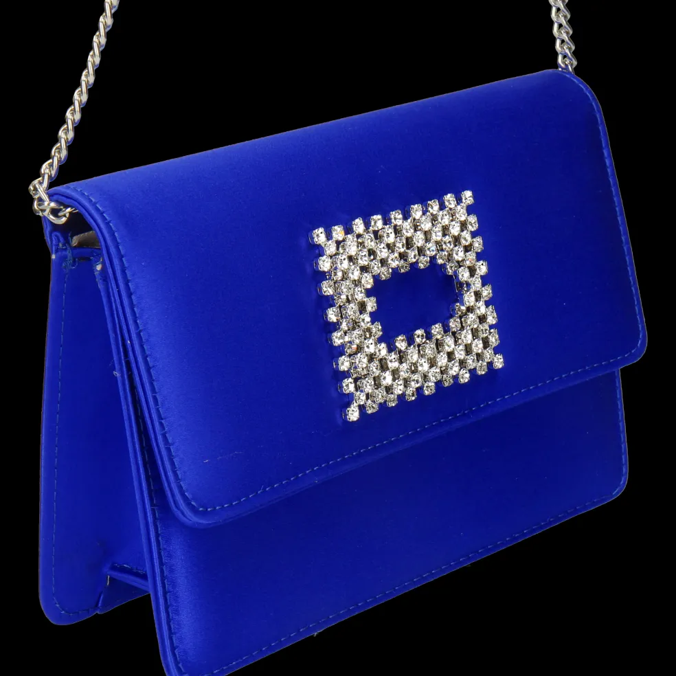 Melvin & Hamilton präsentiert seine exklusive Capsule Collection in Zusammenarbeit mit der italienischen Marke Fratelli Russo. Die mit einem auffälligen quadratischen, kristallverzierten Magnetverschluss geschmückte Clutch wird in Italien hergestellt. Die Tasche aus blau Satin Franca ist mit einer farblich abgestimmten Ziernaht versehen, die ihr ein handwerkliches Finish verleiht. Die Metallkette erlaubt es, die Clutch auch über der Schulter zu tragen.