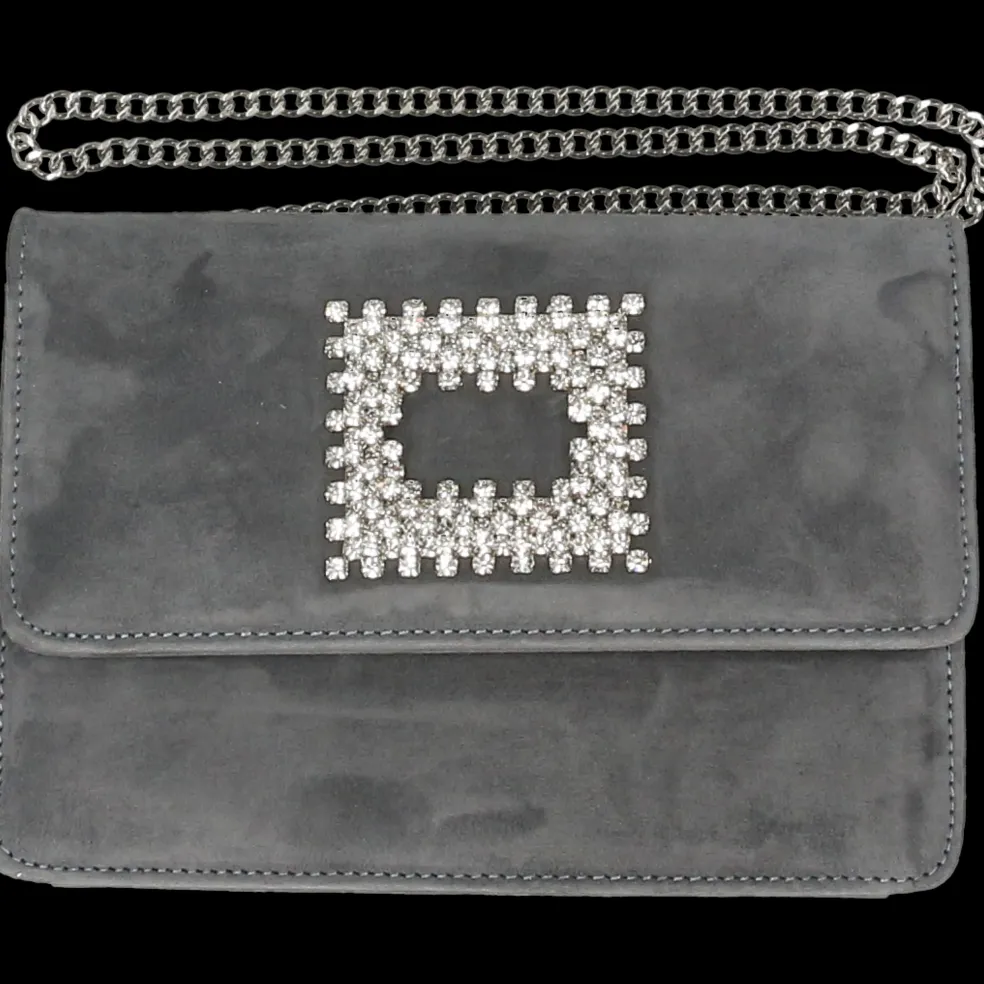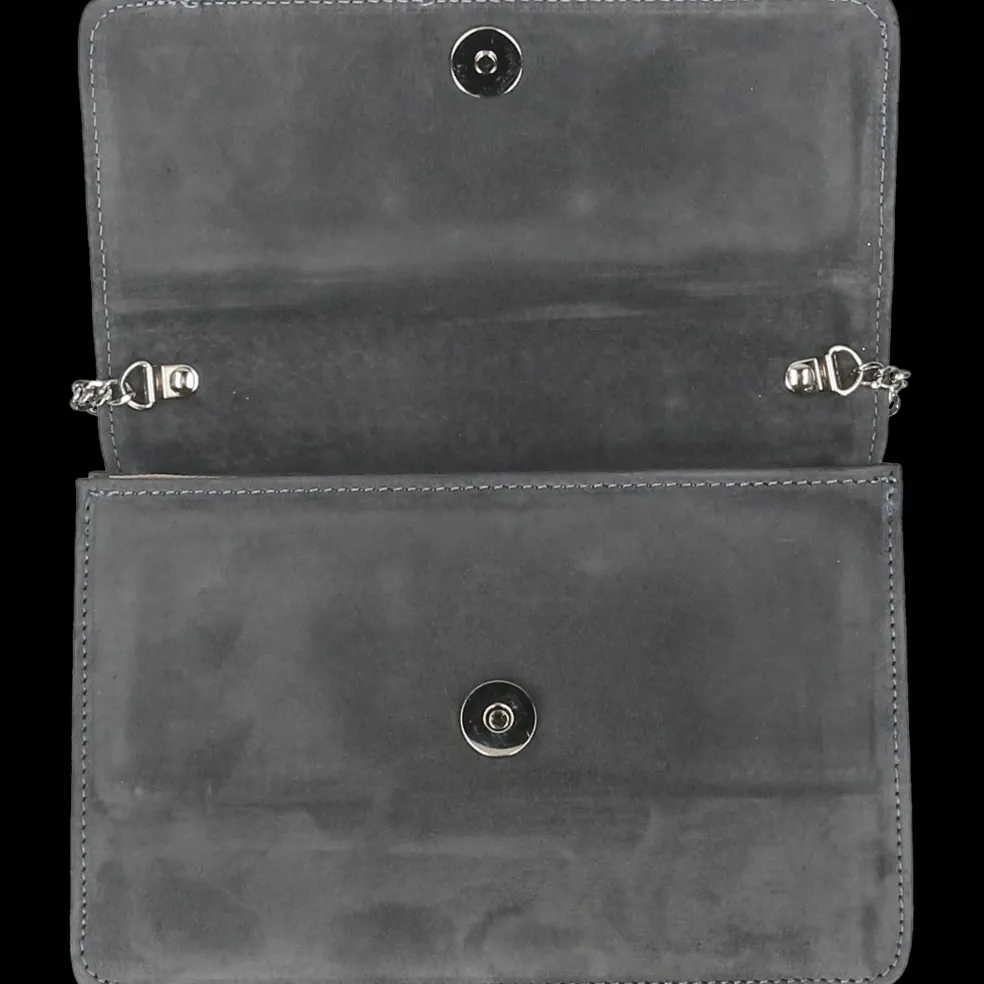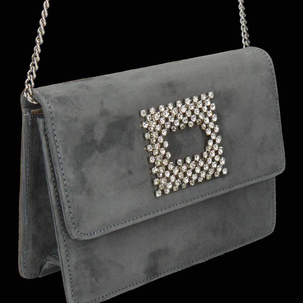 Melvin & Hamilton präsentiert seine exklusive Capsule Collection in Zusammenarbeit mit der italienischen Marke Fratelli Russo. Die mit einem auffälligen quadratischen, kristallverzierten Magnetverschluss geschmückte Clutch wird in Italien hergestellt. Die Franca Tasche aus Veloursleder in grau ist mit einer farblich abgestimmten Ziernaht versehen, die ihr ein handwerkliches Finish verleiht. Die Metallkette erlaubt es, die Clutch auch über der Schulter zu tragen.