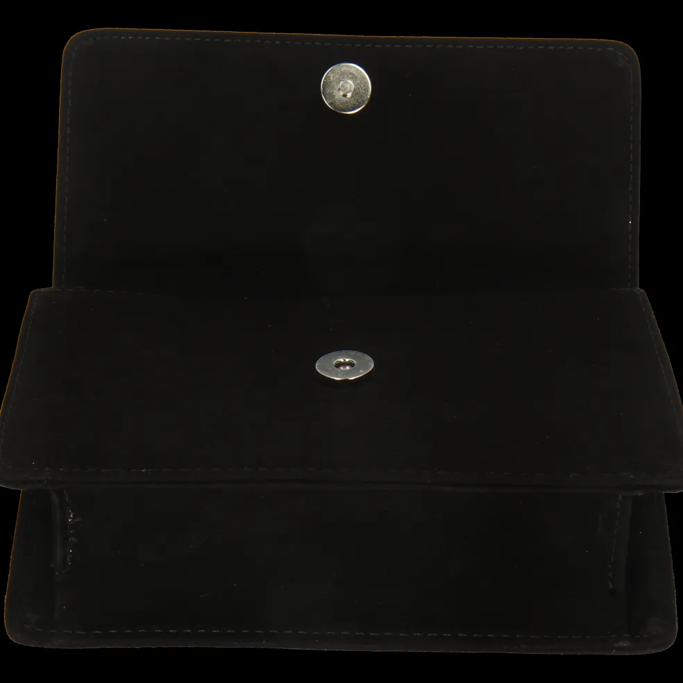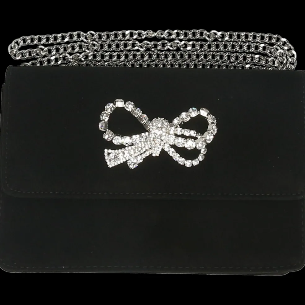 Melvin & Hamilton präsentiert seine exklusive Capsule Collection in Zusammenarbeit mit der italienischen Marke Fratelli Russo. Die mit einem auffälligen, kristallverzierten Magnetverschluss in Form einer Schleife geschmückte Clutch wird in Italien hergestellt. Die Franca Tasche aus schwarzem Veloursleder ist mit einer farblich abgestimmten Ziernaht versehen, die ihr ein handwerkliches Finish verleiht. Die Metallkette erlaubt es, die Clutch auch über der Schulter zu tragen.