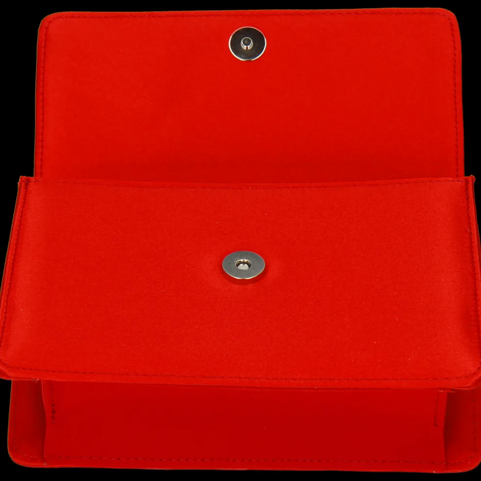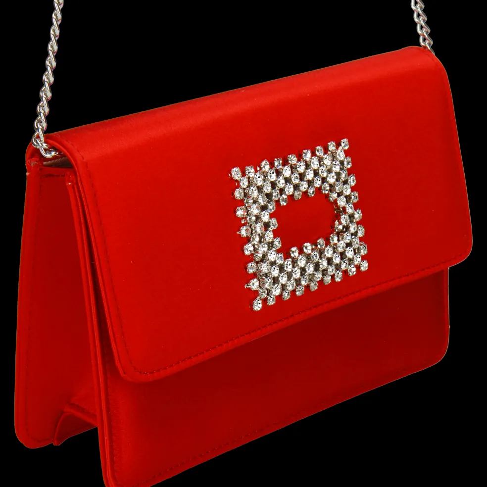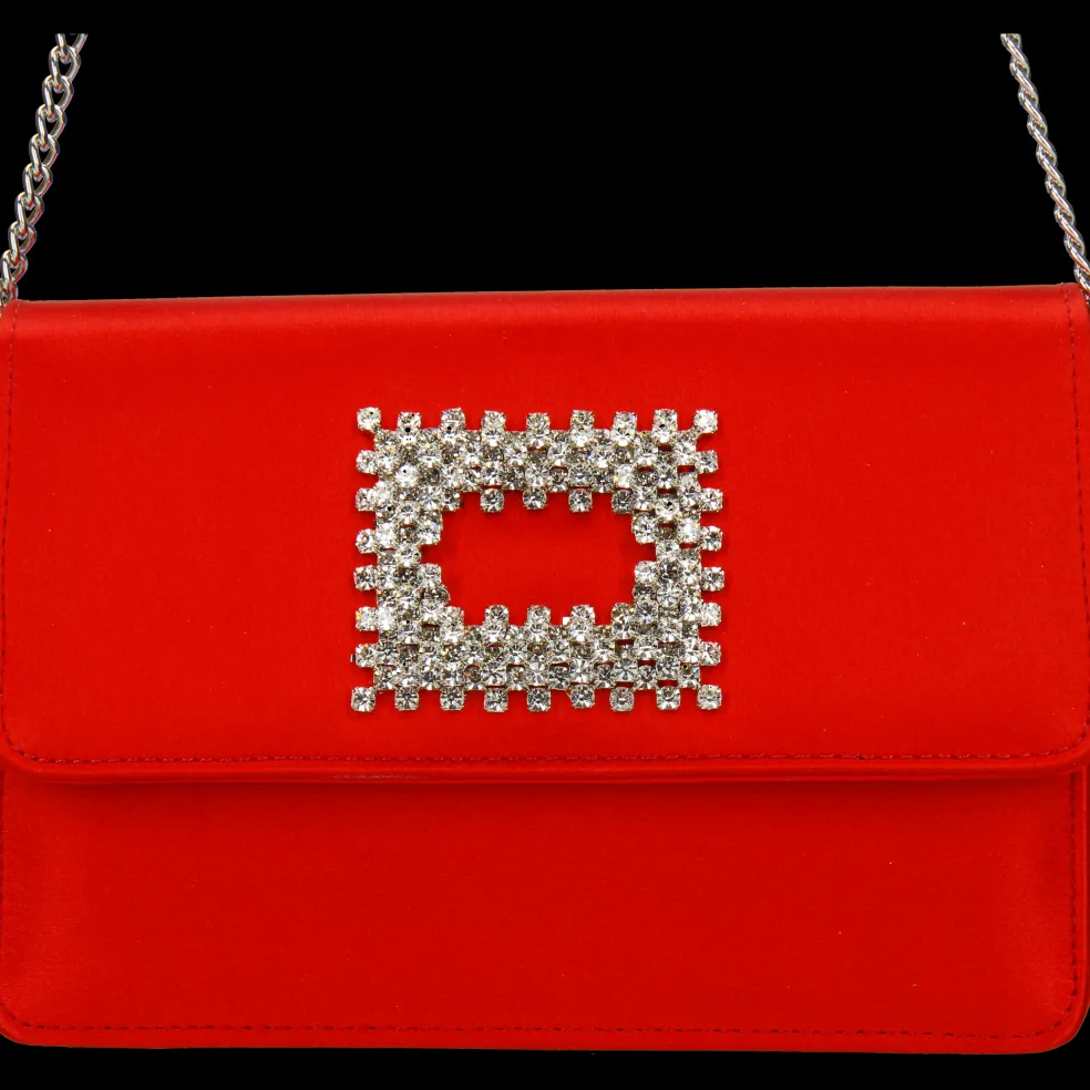 Melvin & Hamilton präsentiert seine exklusive Capsule Collection in Zusammenarbeit mit der italienischen Marke Fratelli Russo. Die mit einem auffälligen quadratischen, kristallverzierten Magnetverschluss geschmückte Clutch wird in Italien hergestellt. Die Tasche aus rotem Satin Franca ist mit einer farblich abgestimmten Ziernaht versehen, die ihr ein handwerkliches Finish verleiht. Die Metallkette erlaubt es, die Clutch auch über der Schulter zu tragen.