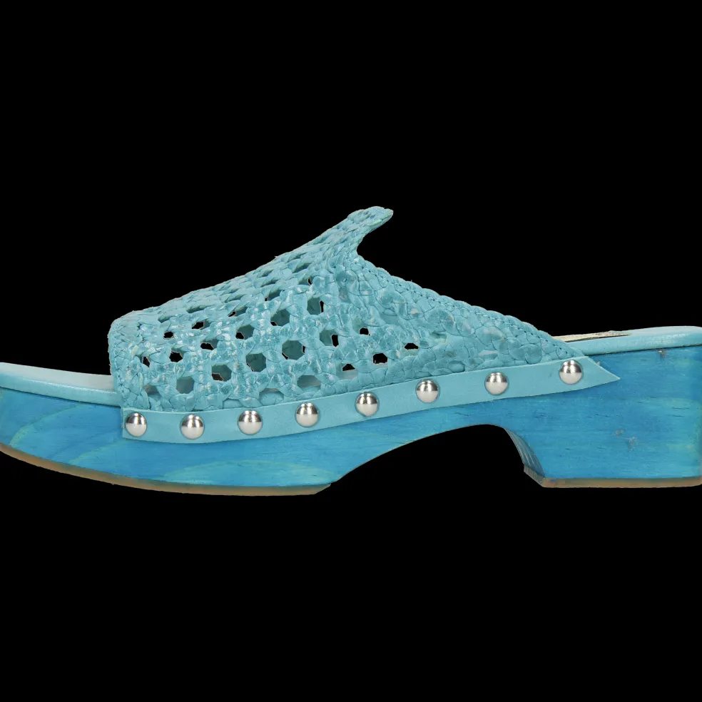 Melvin & Hamilton präsentiert seine Frühjahr/Sommer-Kollektion von Clogs für Damen. Bequem und mit Plateau, begleiten dich die Clogs durch die gesamte Saison. Entdecke unser Modell Maria 1 aus Leder, seine Eigenschaften und wie man es trägt. Unsere Clogs sind aus hochwertigem Leder und mit dem Know-how der Marke angefertigt. Sie sind in verschiedenen Versionen erhältlich, ob als feminine gewebte Clogs oder als grungige Nieten-Sandalen. Sie sind mit einer Plateausohle aus Holz und Gummi ausgestattet, die einen eleganten und schicken Look verleiht, ohne dass auf Komfort verzichtet werden muss. Entscheide dich für diese türkis Lederclogs und zeige deine Beine!