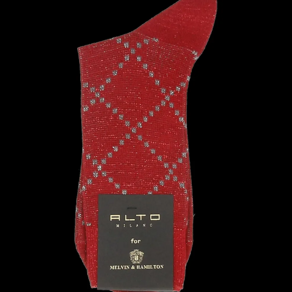 Die halblangen Socken Monaco in rot ziehen mit ihrem Glitzerdesign mit Rautenmuster alle Blicke auf sich und sorgen für einen glamourösen und femininen Touch. Die Monaco Socken wurden von Alto Milano für Melvin & Hamilton entworfen und hergestellt. Sie bestehen zu 80% aus Baumwolle, zu 14% aus Polyamid und zu 6% aus Polyester, um die Socke bequem und angenehm für den Alltag zu machen.