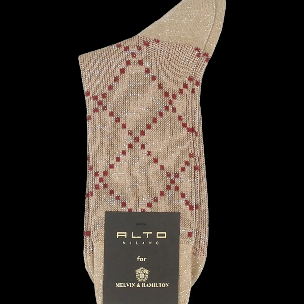 Die halblangen Socken Monaco in beige ziehen mit ihrem Glitzerdesign mit Rautenmuster alle Blicke auf sich und sorgen für einen glamourösen und femininen Touch. Die Monaco Socken wurden von Alto Milano für Melvin & Hamilton entworfen und hergestellt. Sie bestehen zu 80% aus Baumwolle, zu 14% aus Polyamid und zu 6% aus Polyester, um die Socke bequem und angenehm für den Alltag zu machen.
