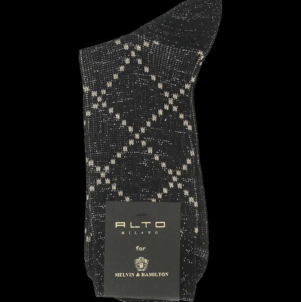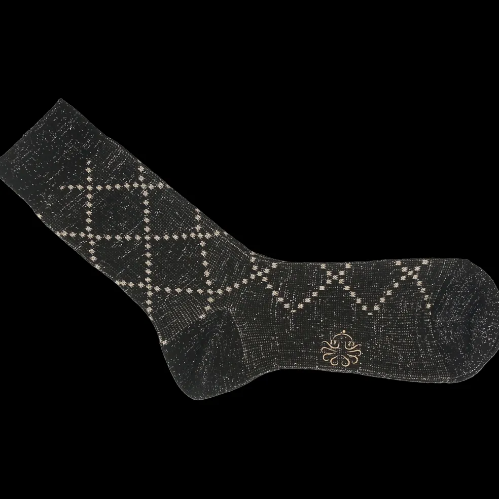 Die halblangen Socken Monaco in schwarz ziehen mit ihrem Glitzerdesign mit Rautenmuster alle Blicke auf sich und sorgen für einen glamourösen und femininen Touch. Die Monaco Socken wurden von Alto Milano für Melvin & Hamilton entworfen und hergestellt. Sie bestehen zu 80% aus Baumwolle, zu 14% aus Polyamid und zu 6% aus Polyester, um die Socke bequem und angenehm für den Alltag zu machen.