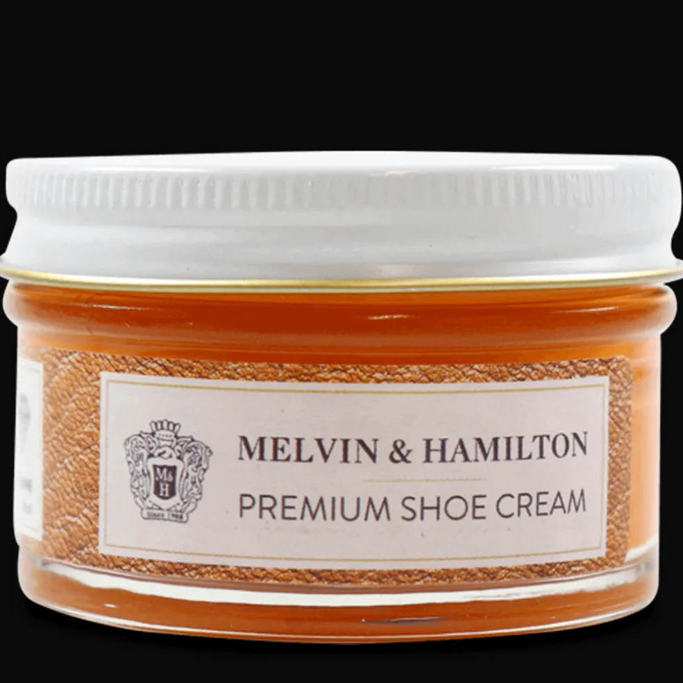 Sie wollen die Schönheit Ihrer Schuhe erhalten? Dann greifen Sie zur neuen Pflegeserie aus dem Hause Melvin & Hamilton. Die orangefarbene Schuhcreme Orange Mandarine sorgt dafür, dass Ihre Schuhe lange strahlend und gepflegt aussehen! Reinigen Sie Ihre Schuhe zunächst gründlich und tragen Sie die Creme dann sparsam mit einem Tuch oder einen weichen, geeigneten Bürste auf. Nachdem die Creme getrocknet, empfiehlt sich eine Politur für noch mehr Glanz. So hinterlassen Sie überall einen bleibenden Eindruck! Inhalt: 50 ml.