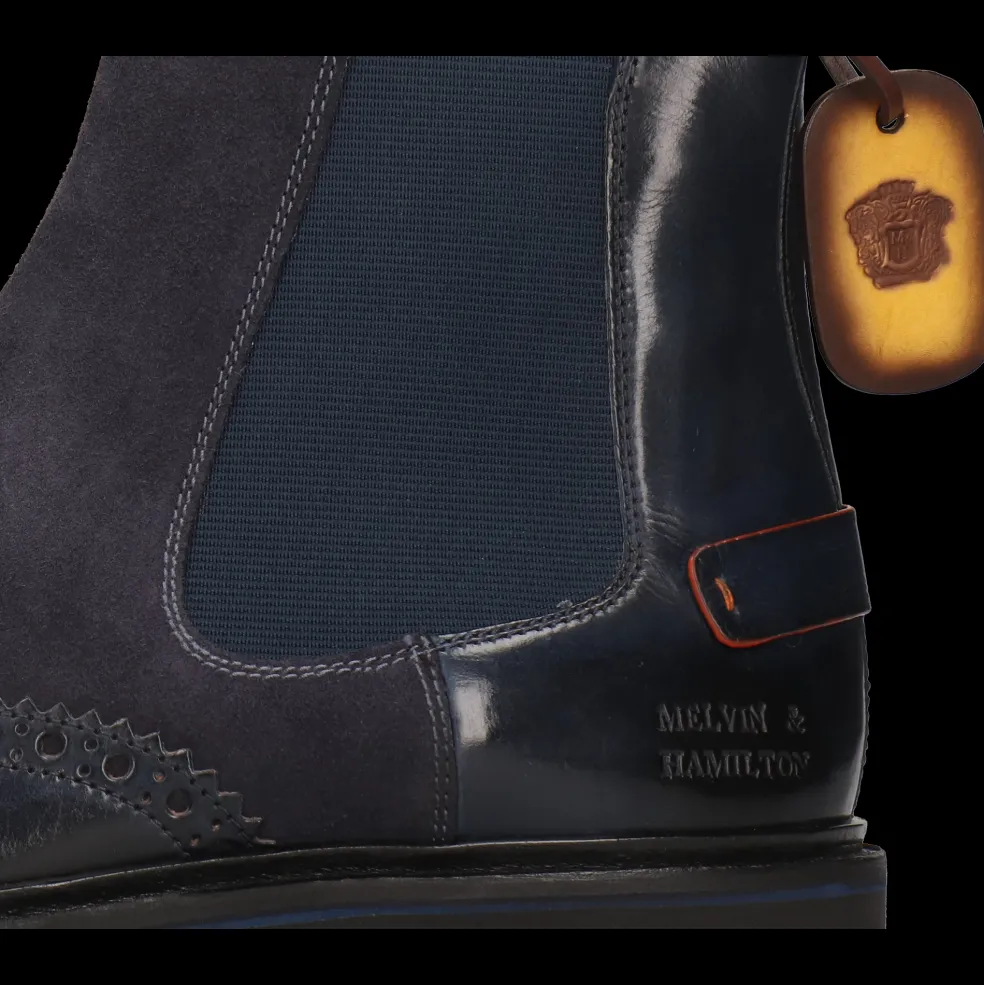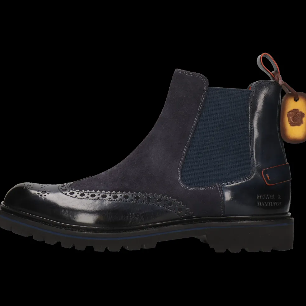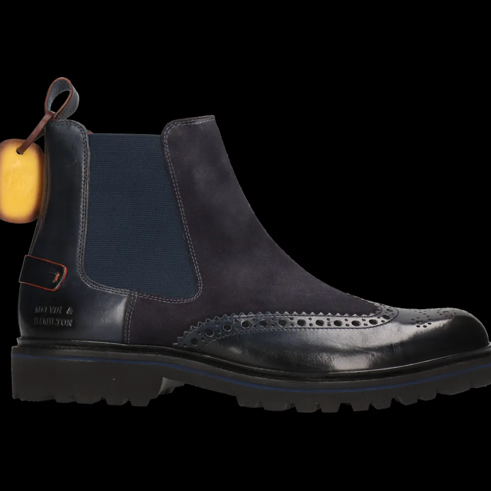 Lass Dich von der Herbst-Winter-Kollektion stylischer Lederstiefeletten für Herren von Melvin & Hamilton verzaubern. Wir stecken unser gesamtes Know-How der Lederverarbeitung in das Design und die Herstellung außergewöhnlicher Stiefeletten, den Must-Haves der kalten Jahreszeit. Mit dem Modell Pierce 26 entscheidest Du dich für einzigartige Qualität!Stiefeletten aus Leder in Blau, nichts ist klassischer und eleganter, auch wenn sie einen kleinen originellen Touch haben. Sie sind Begleiter für all Deine Outfits und insbesondere für einen schicken Business-Look. Diese Stiefeletten mit Gummi-Sohlen in blau lassen sich besonders gut im Winter tragen und halten Deine Füße schön warm!