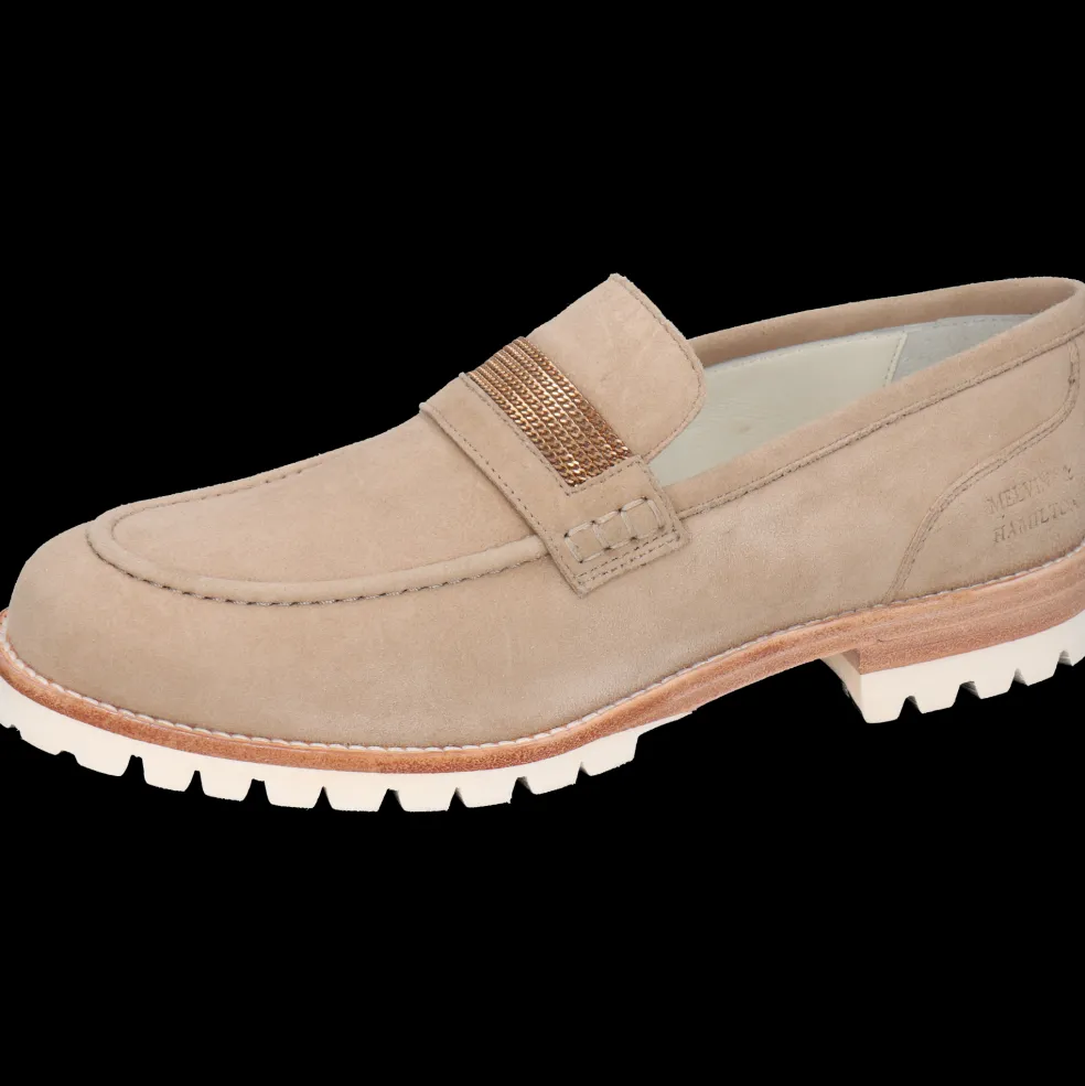 Melvin & Hamilton präsentiert seine Damenloafers für diesen Frühling und Sommer! Ob mit Schleifen, Quasten oder raffinierten Details, Loafers gibt es in vielen Formen. Entdecke unser Ledermodell Regine 14, seinen Charakter und wie man es trägt. Um ein klassisches Outfit aufzupeppen oder mit Farben und Mustern zu spielen, warten diese sehr originellen Leder-Loafer in beige auf Dich! In den warmen Tagen sind sie ein bequemer und dennoch stylischer Begleiter für jeden Tag! Heb Dich von der Masse ab – mit Schuhen von Melvin & Hamilton aus Qualitätsleder.