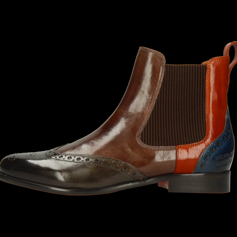 Melvin & Hamilton präsentiert seine Herbst/Winter-Kollektion von Damenstiefeletten. Die Marke hat ihr gesamtes Know-how der Lederverarbeitung in das Design und die Herstellung von außergewöhnlichen Stiefeletten gesteckt, die sich besonders in der kalten Jahreszeit tragen. Entdecke unsere Stiefelette Selina 29, ihren Charakter und wie man sie trägt. Diesen Winter bringst Du Farbe in dein Leben mit diese sehr originellen Chelsea Boots in mehrfarbig! Warme Farben und modische Muster sind das Rezept für Melvin & Hamiltons Angebot an trendigen Schuhen in dieser Saison. Wirst du es wagen, sie zu tragen, um aufzufallen?