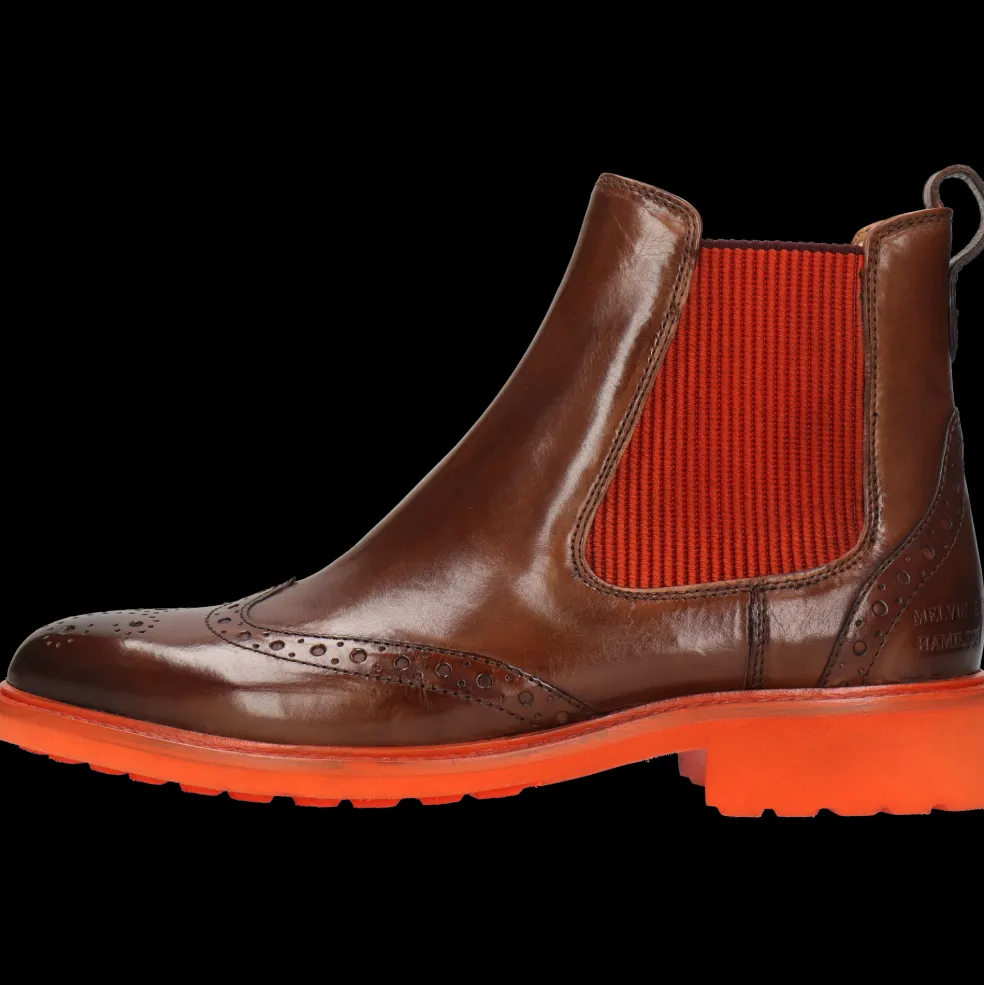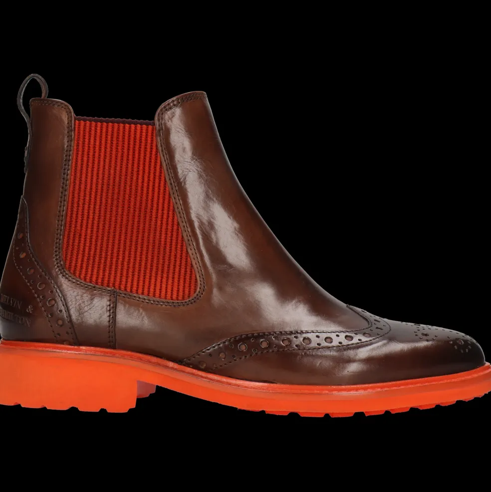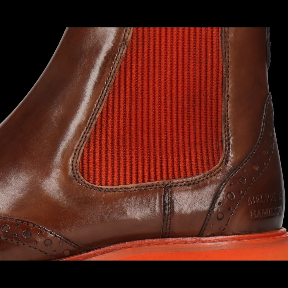 Melvin & Hamilton präsentiert seine neuen Chelsea Boots für Damen aus der Herbst/Winter-Kollektion. Diese Stiefeletten mit seitlichem Gummizug sind im Winter aufgrund ihres Komforts und ihrer praktischen Vorzüge unverzichtbar und die Besonderheit der Marke. Hier sind die Eigenschaften unseres Modells Selina 29 aus Leder.Immer eine gute Wahl sind diesen feinen Leder Chelsea-Stiefeletten Selina 29 in Braun. Ob klassisch oder mit einem modernen Touch, dieses Modell mit einer Sohle aus Gummi in orange kann während der gesamten kalten Jahreszeit getragen werden, sei es zur Arbeit oder zu einem Date. Diese Chelsea Boots werden schnell zu den Lieblingen deiner Garderobe!