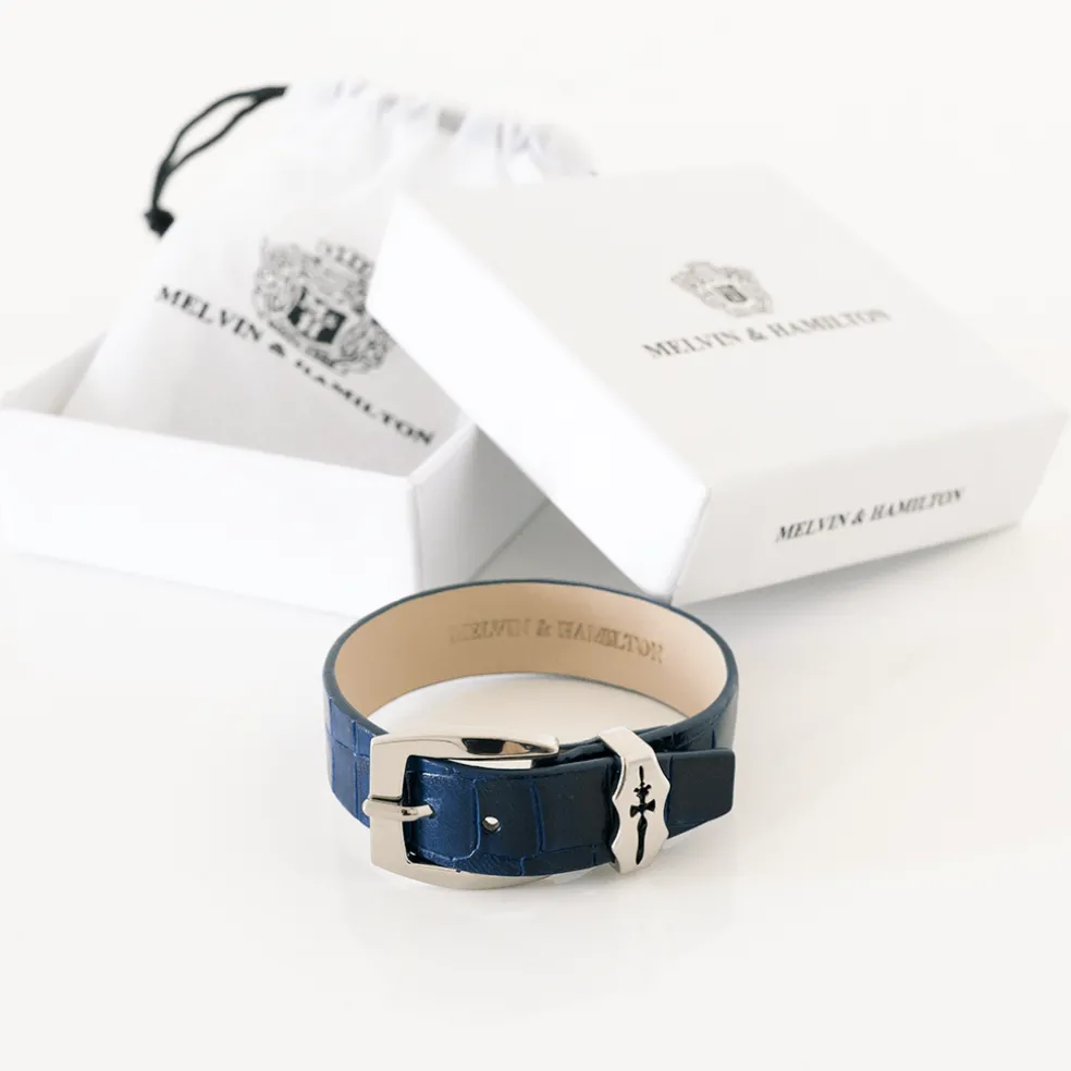 Auch für Herren sind Armbänder richtig in! Melvin & Hamilton hat sein Sortiment um das Armband Stark ergänzt, welches in unterschiedlichen Farben erhältlich ist. Stark in Electric Blue überzeugt mit einem hochwertigen Lederband in kräftig blauer Kroko-Optik mit dekorativer Schnalle in gold. Setzen Sie Ihr Handgelenk gekonnt in Szene. Wissen Sie schon, was Sie zu diesem Armband tragen werden?