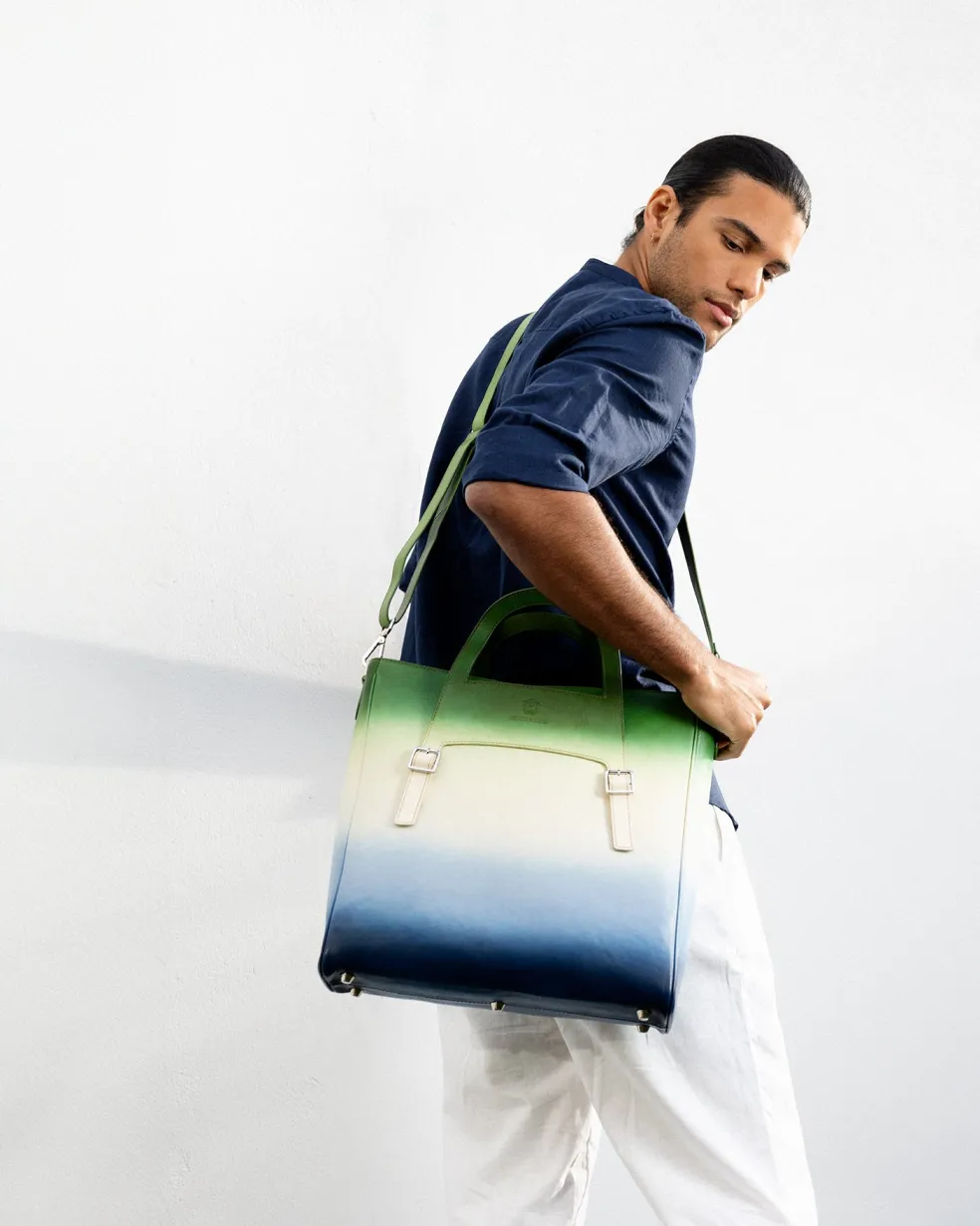 Auch Herren haben ein Recht auf ihre Handtasche! Meine Herren, heben Sie sich mit einer einzigartigen und originellen Herrentasche von der Masse ab. Die von Melvin & Hamilton entworfene und gestaltete Tasche Tempe aus griffigem Glattleder wird dich mit deinem gewagten Farbverlauf mit „Tie and Dye“-Effekt begeistern. Dank ihrer großzügigen Abmessungen bietet sie Platz für ein Tablet, einen Laptop, ein Buch und all Ihre persönlichen Gegenstände. Die Henkel sind an Laschen befestigt, die die Codes der Monks und ihre Schnallen aufgreifen. Trage die Tasche in der Hand oder als Schultergurt mit dem abnehmbaren Lederriemen. Tempe wird deinem Look einen schicken und trendigen Touch verleihen!